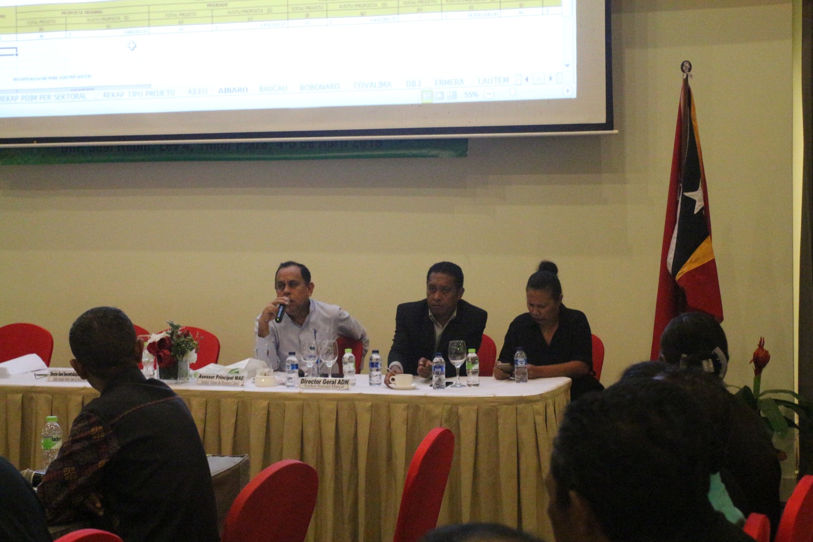 Partisipantes Sira Antusias Tebes Rona Intervensaun Husi Asessor Prinsipal Ministeriu Administrasaun Estatal, Senhor, Tomas do Rosario Cabral iha Salaun Suai Room, Timor Plaza, Dili.