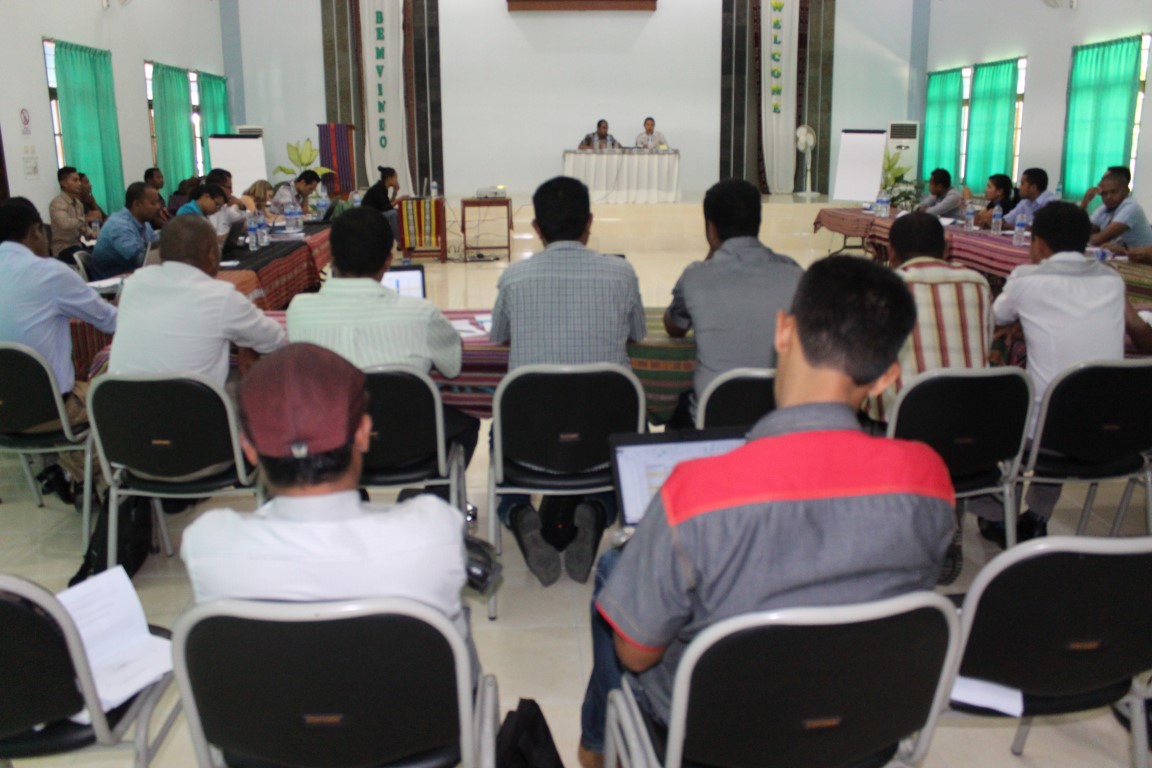 The PNDS Municipal Delegated Director is together with the National PNDS Staff are listening to the presentation on Actual progress of Program Implementation Based on the Quick Status Report