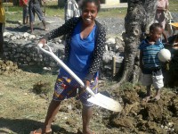 In suku Abo (Quelicai, Baucau) women are involved in the community’s rotating labour roster. The women carry stones, mix cement, fetch water and prepare the framework for the community’s new buildings. The community are building a health clinic, community centre and rehabilitating a road.