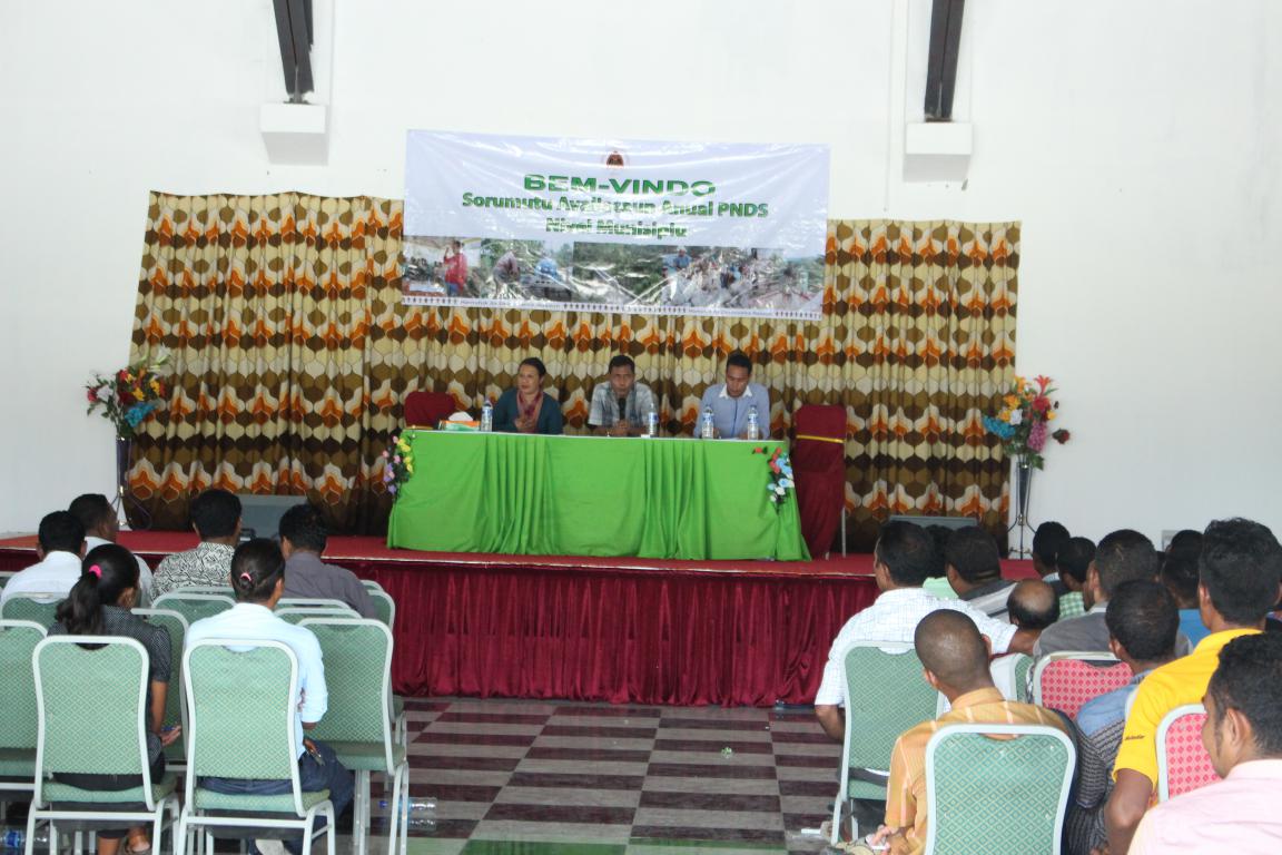 Hafoin kompleta implementasaun Programa Nasional Dezenvolvimentu Suku (PNDS) ba Siklu dahuluk (Faze I, II & III), ekipa PNDS Munisípiu Manatuto hala’o Sorumutu avaliasaun annual ho nia objetivu atu revé fila fali vantajen no dezvantajen ne’ebé ekipa Munisípiu sira infrenta iha implementasaun programa PNDS. Avaliasaun annual ba implementasaun Programa PNDS ida ne’e hala’o iha Salaun Bescem, Manatuto Villa (25/01/2017).