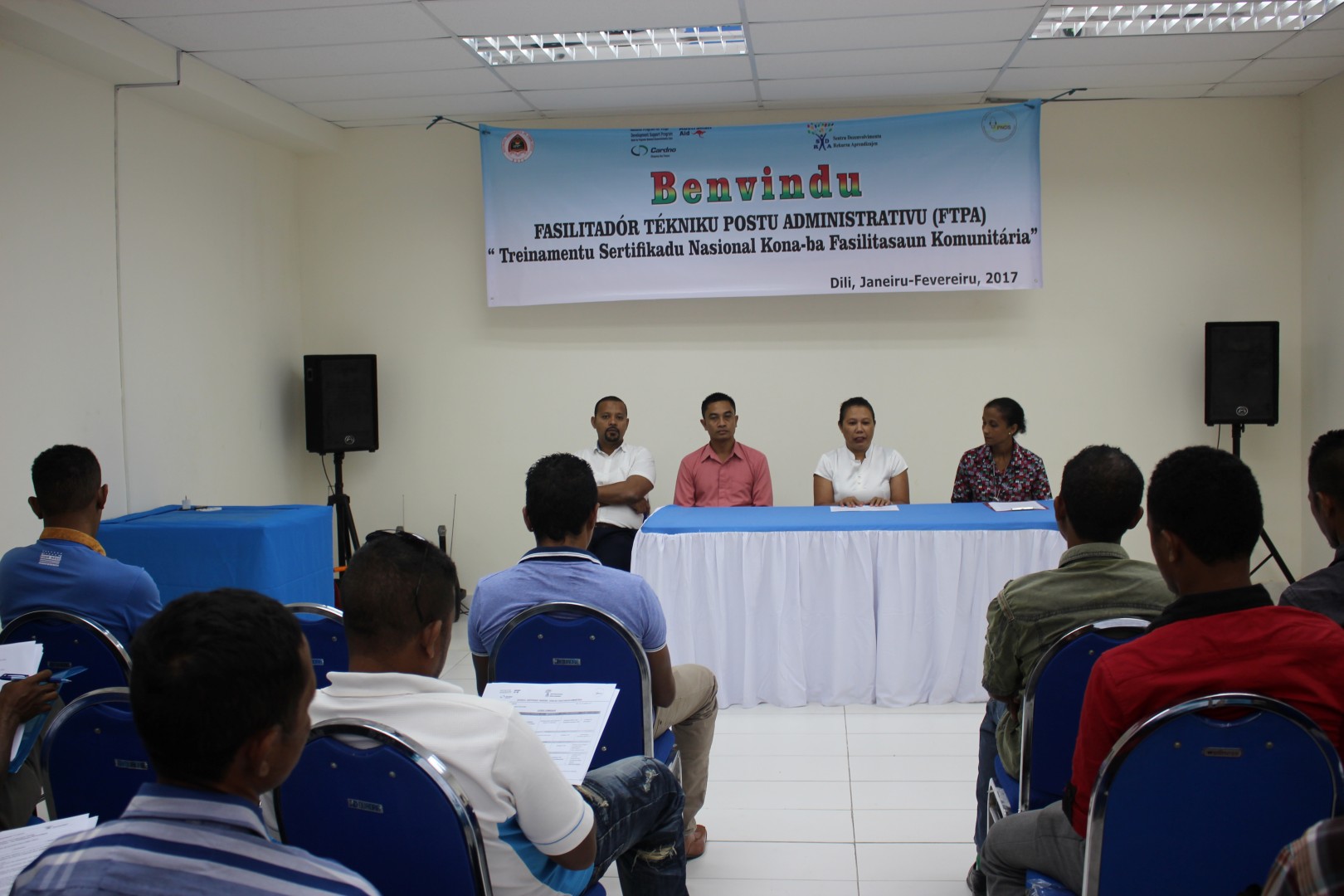 Atu aumenta koñesimentu Fasilitadores Tékniku Postu Administrativu (FTPA) iha area Fasilitasaun komunidade iha baze, Sekretariadu Tékniku Programa Nasionál Dezenvolvimentu Suku (ST-PNDS), organiza treinamentu espesífiku iha area Fasilitasaun komunidade hahú iha fulan Janeiru ate Febereiru 2017 iha Marie Stopes, Timor Leste-Dili. (Ba grupu I hahú iha 16 Janeiru 2017).