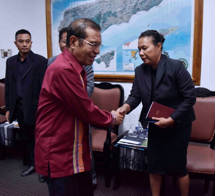 Primeiru-Ministru Taur Matan Ruak orienta kestaun ne’e ba estrutura PNDS wainhira Diretora PNDS, Dulce Guterres Junior hamutuk ho ekipa halo Audensia ho Primeiru-Ministru, Taur Matan Ruak iha Palacio do Governo Dili, 04/06/2019.
