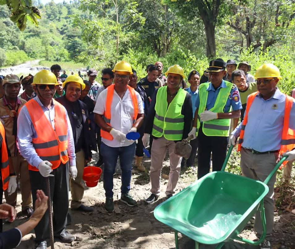 Diretor Nasionál Patrimoniu no Logistika PNDS, Rogerio Muakandala Manuel ne’ebe reprezenta Sekretariu Ezekutivu PNDS hala’o Lansamentu Fatuk Dahuluk ba Konstrusaun estrada foun Iha Suku Vatovou ne’ebe akompaya husi Presidente Autoridade Munisipiu Liquisa, Paulino Ribeiro ho Diretora Servisu Munisipiu Apoiu PNDS Munisipiu Liquisa.