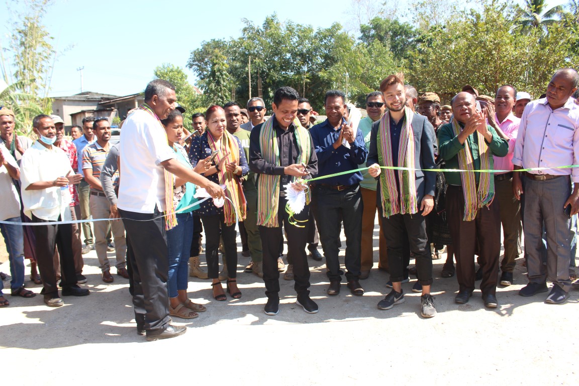 Ministru Administrasaun Estatal, Dr. Miguel Pereira de Carvalho, Akonpanya Husi Presidente Autoridade Munisipal Bobonaro no Diretora Actual PNDS NAsional no Komunidade Suku Ritabou Simbolu Tesi Pita Inaugurasaun Projeitu Estrada Rural.