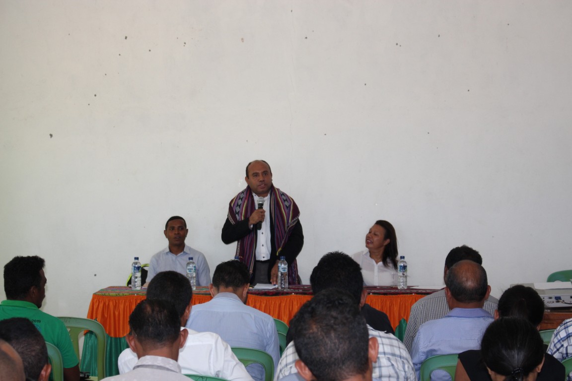 Sekretariu Regional no Dezenvolvimentu Rural Hala’o Intervensaun no Loke Avertura iha Enkontru Sosializa Mata Dalan Implementasaun PNDS iha RAEOA, Oecusse/Ambeno.