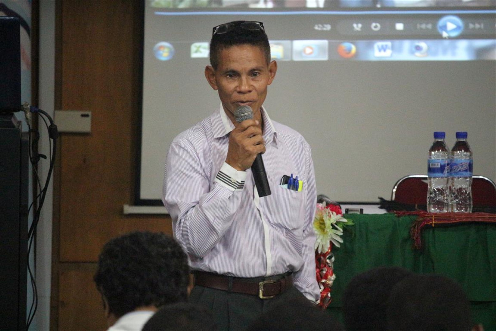 Sr. Eurico C. dos Reis Araujo. MA, nu’udar dekanu Fakuldade siénsia sosiais fo nia lia menon ba estudantes sira antes seminario ne'e hahu.