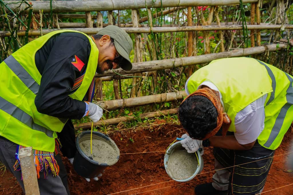 Sekretáriu Estadu Dezenvolvimentu Lokál (SEDL), Mateus W. dos Santos, Tallo, hamutuk ho Prezidenti Autoridade Munisípiu Manufahi Luis Marçal da Costa Tavares, halo lansamentu dahuluk ba projetu PNDS Siklus VII iha Aldeia Colidati, Suku Grotu.