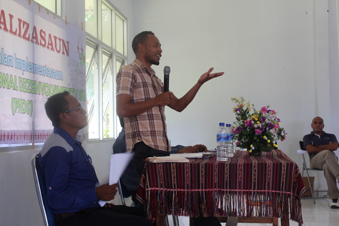 - Autoridade Lokal hamutuk ho Ekipa Jestau Suku husi Munisipiu Baucau rona hela sosializasaun kona-ba mata dalan implementasaun programa PNDS