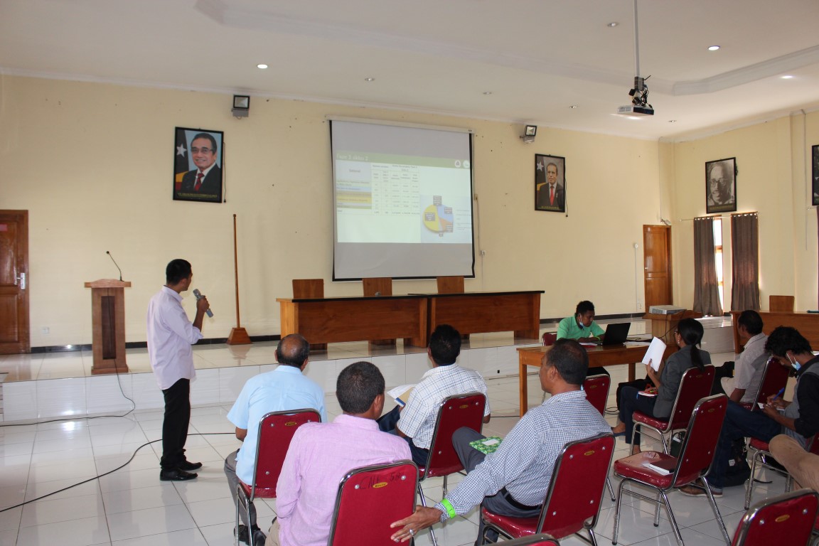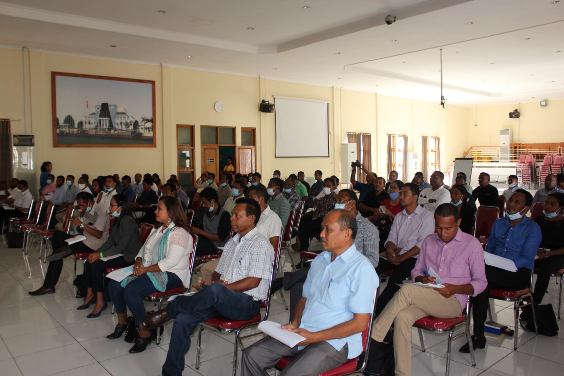 Chefe Unidade Operasional Programa, Marcio J. M .F. Lihite, Aprezenta Progresu Servisu ba Diretor/a no Fungsiunariu PNDS Partisipa iha Enkontru Mensal Nivel Nasional iha Salaun Enkontru CNE, Dili.