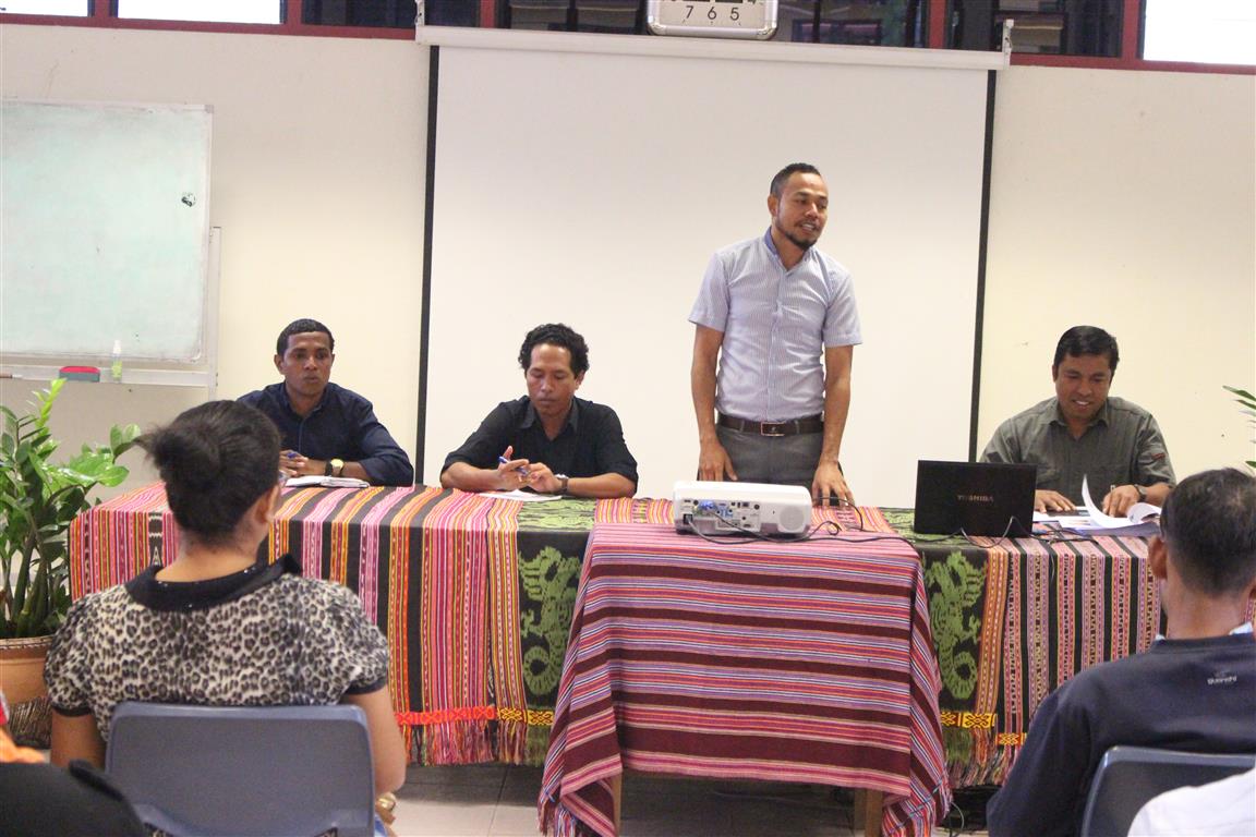 Sr. Rosito Guterres, Xefe Departamentu Monitoring no Avaliasaun, nu’udar Diretór Interinu PNDS, iha ninia intervensaun hatete katak treinamentu ida ne’e importante tebes ba fasilitadór tékniku Postu Administrativu sira.