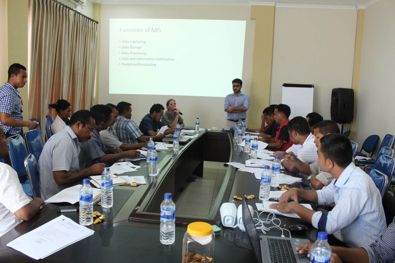 Jalaluddin Hameéd, nu’udar assessor ba iha MIS hamutuk ho nia ekipa fasilita treinamentu ida ne’e ho di’ak tebes, alende halo introdusaun jerál kona-ba oinsá atu jere dadus programa ninia iha sistema baze de dadus nomós halo simulasaun ou pratika oinsá munisípiu ida-idak bele organiza no hatama dadus iha sistema ne’ebe dezenvolve ona husi MIS.