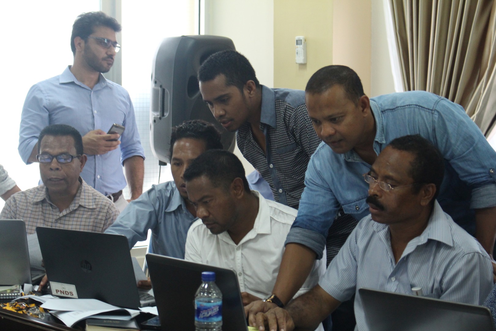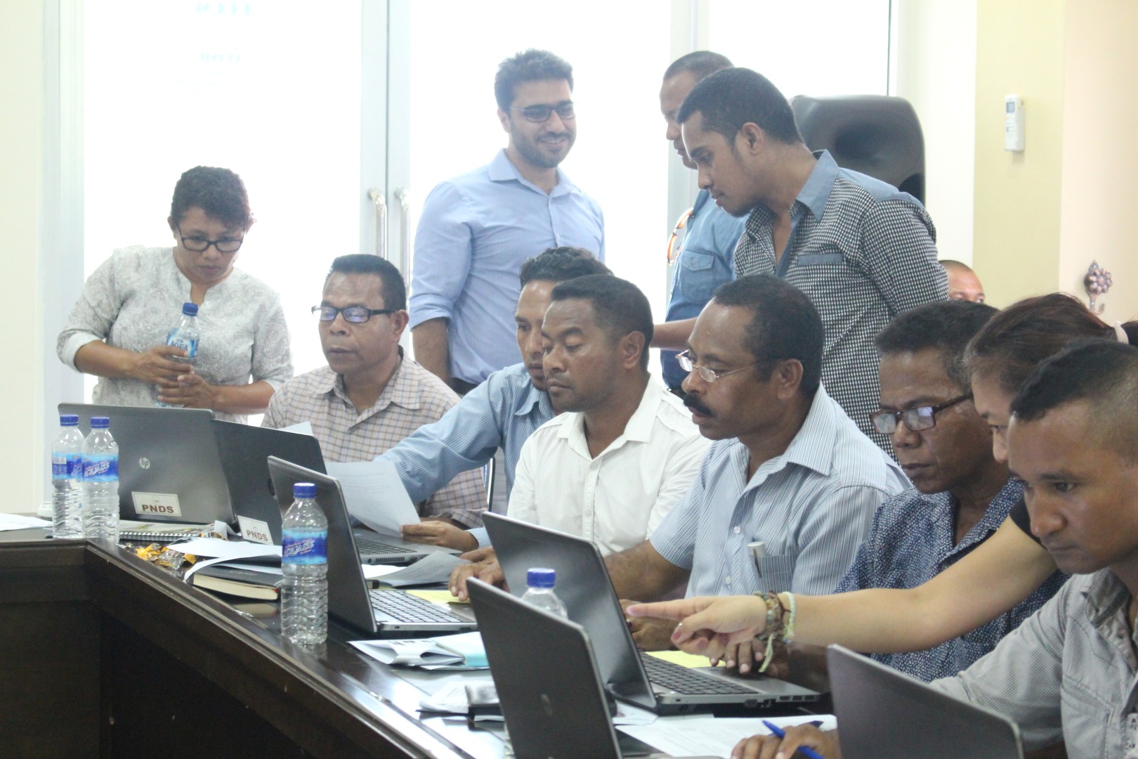 Atu hadi’ak liu tan jestaun oinsá atu jere didi’ak dadus kona-ba asuntu sosiál, finansas nomós asuntu tékniku husi munisípiu 12 ho RAEOA ba implementasaun programa PNDS, sekretariadu Tékniku Programa Nasionál Dezenvolvimentu Suku (ST-PNDS) liu husi MIS (Management Information System) realiza treinamentu ba Kordenadór PNDS husi Munisípiu 12, RAEOA ho Xefe Departamentu iha salaun MPIE, Fatuhada-Dili (30/11/2015).