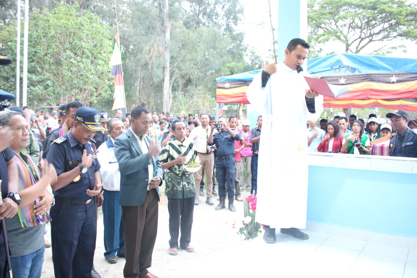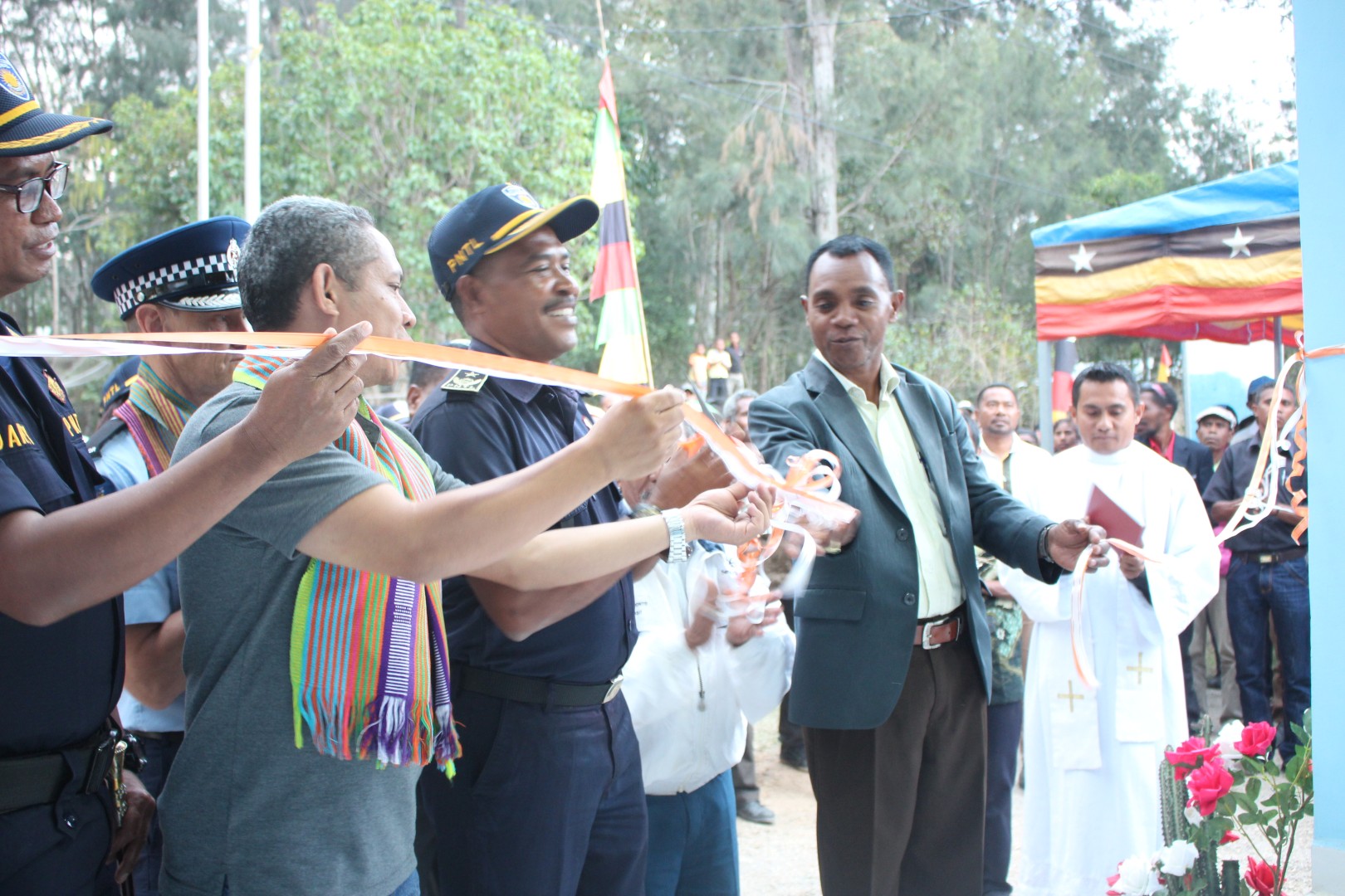 Komisariu Adjunto PNTL, Faustino da Costa Akompanha Husi Administrador Munisipiu Aileu, no Reprezentante Embaisada Nova Zelandia koa Pita simbolu inagurasaun OPS Suku Seloi Craik, Munisipiu Aileu