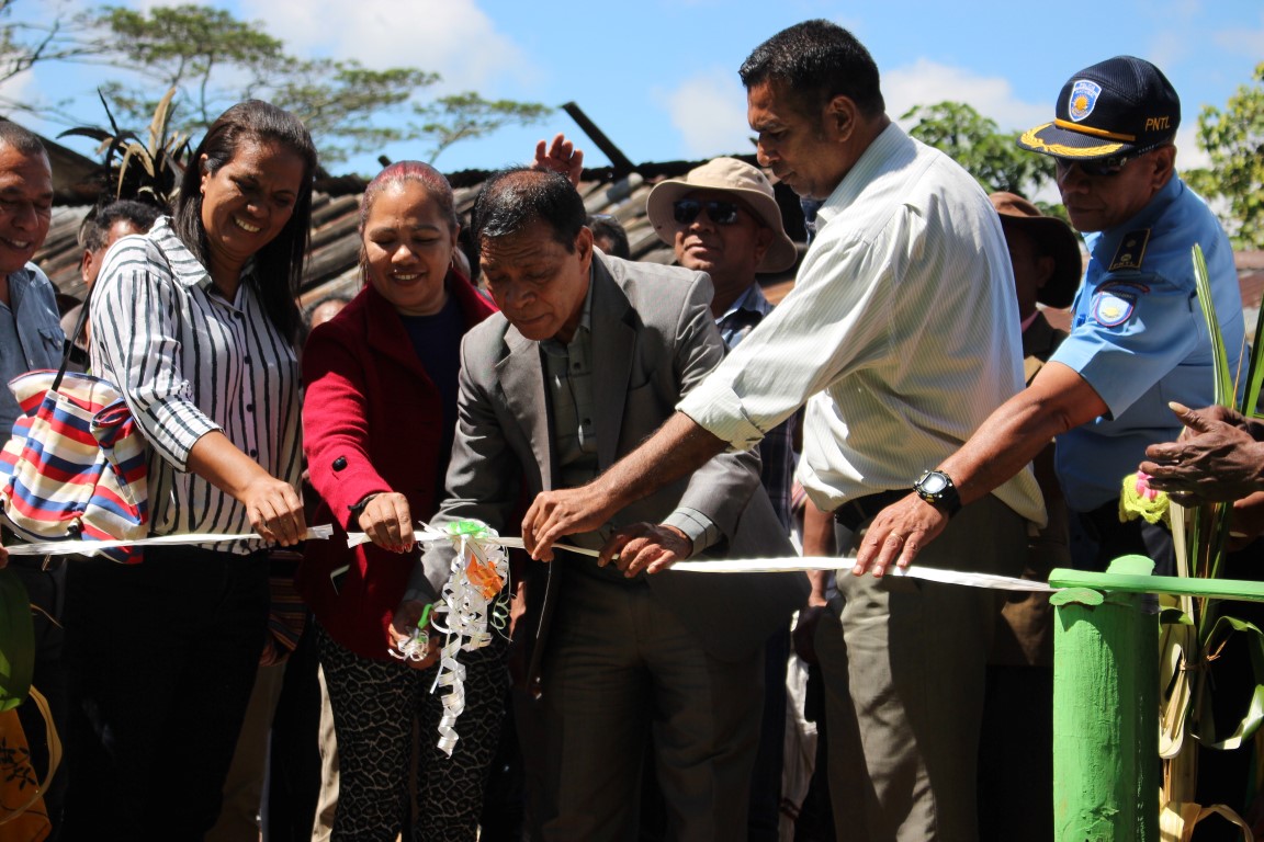 Vice-Ministru Administrasaun Estatal Lino de Jesus Torrezão Tesi Pita Simbolu Inaugurasaun Be’ Mos iha Suku Beremana, Postu Turiscai, Munisipiu Manufahi.