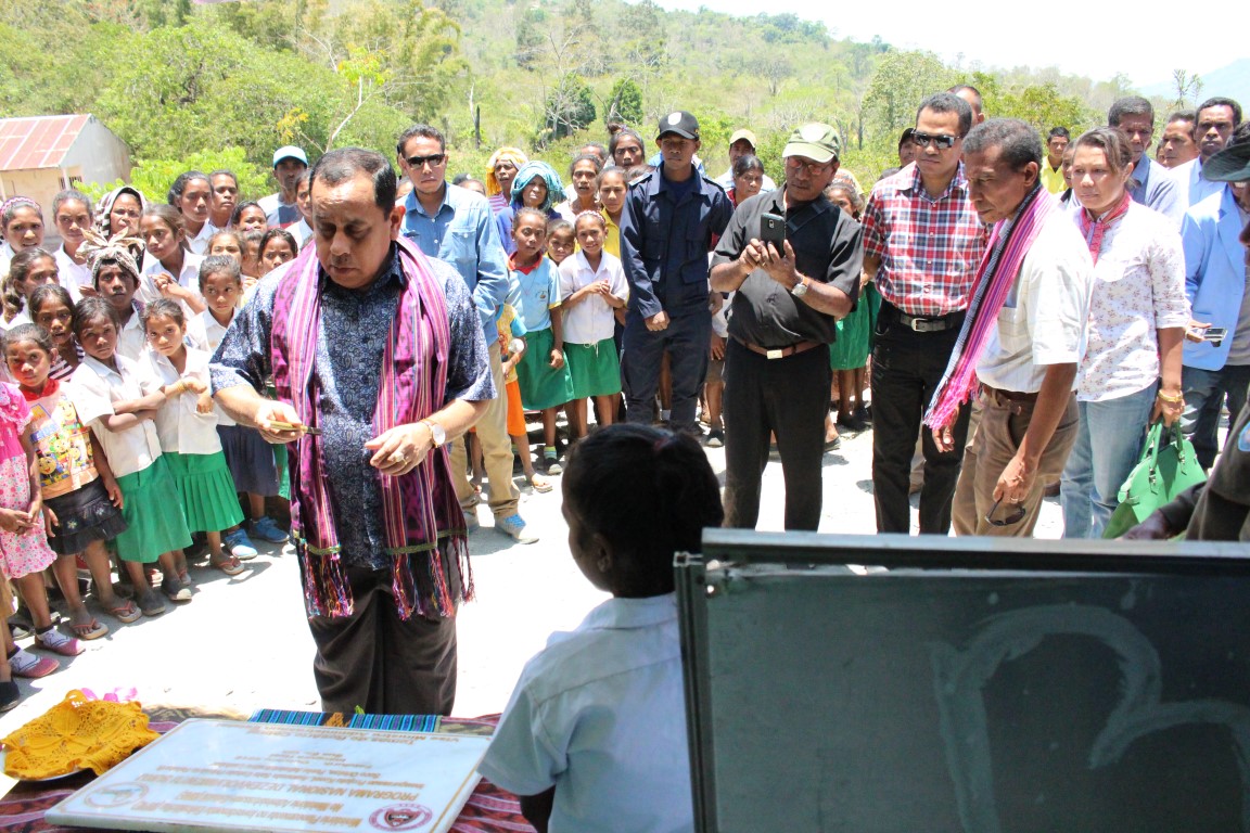 Vice Ministru da Administrasaun Estatal, Tomas do Rosario Cabral, Asina Plaka Projetu simbolu inagurasaun ba projetu Extensaun sala eskola iha Suku Orlalan, Postu Administrativo Laklubar Munisipiu Manatutu