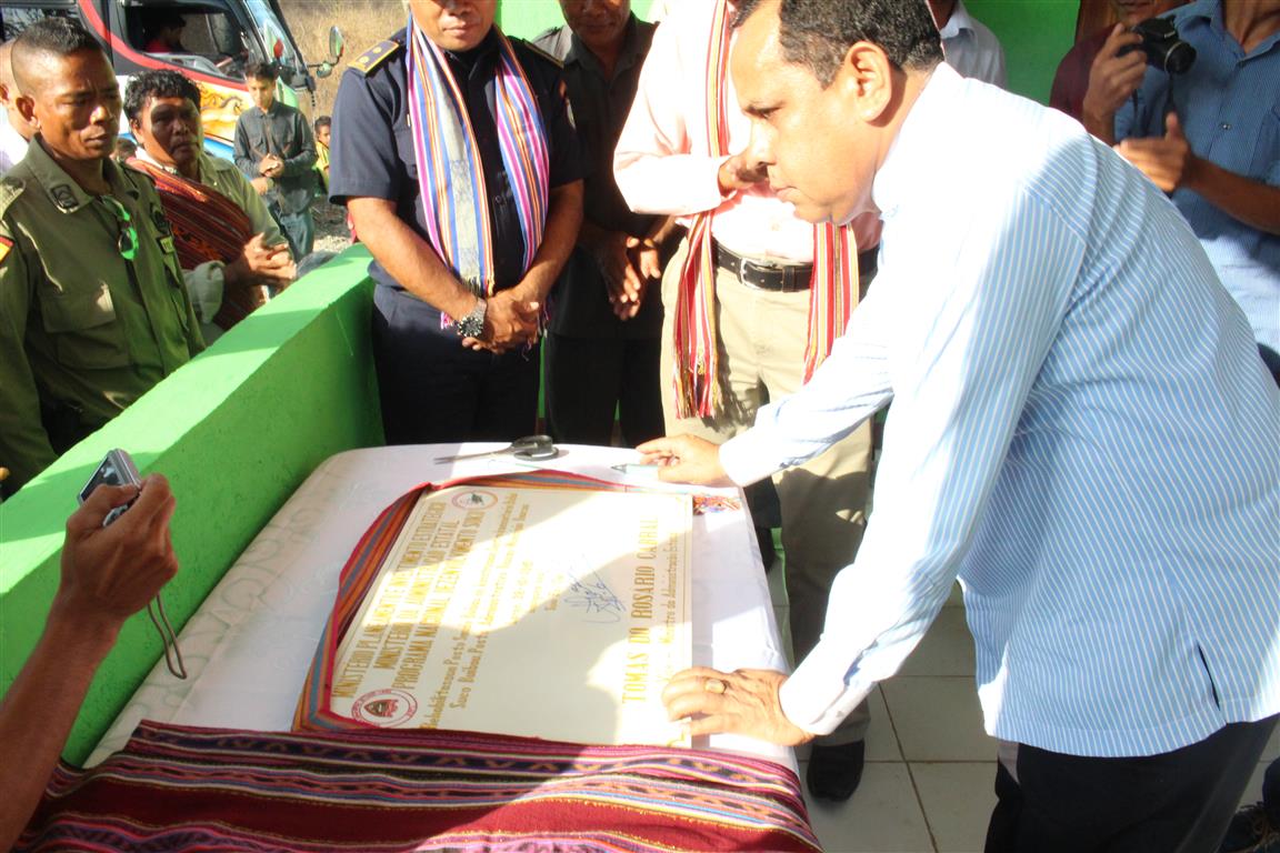 Vice Ministru Administrasaun Estatal, Tomas do Rosario Cabral, Asina Plaka simbolu Inagurasaun ba Programa PNDS iha Suku Buibau, Munisipiu Baucau.